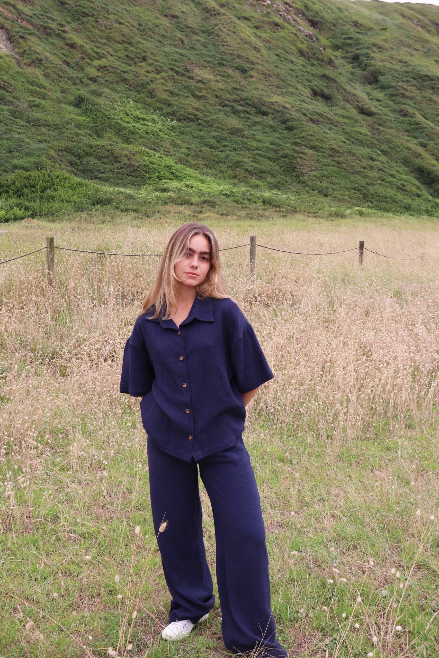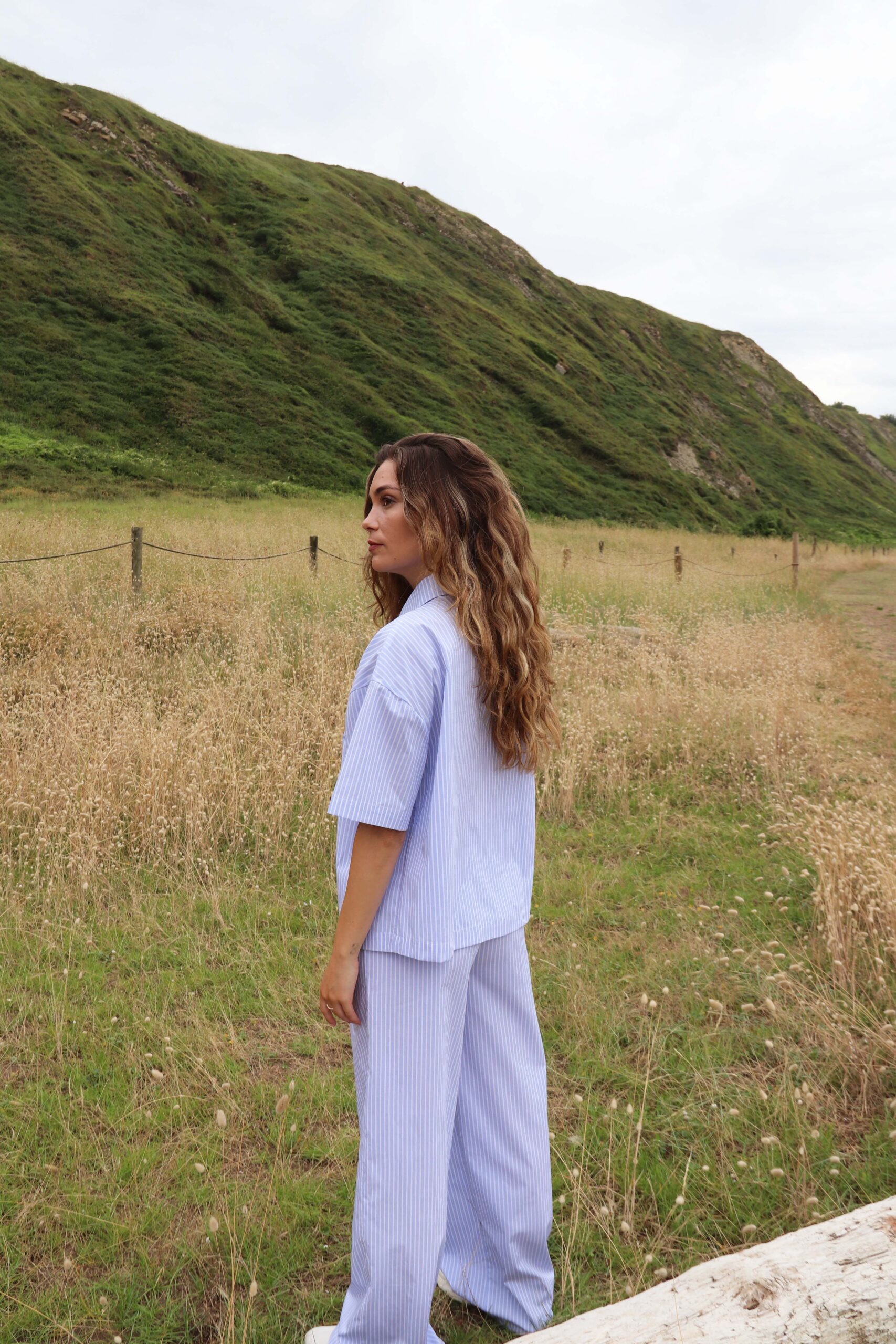 El pantalón Lydia largo en algodón y estampado sutil de rayas, es parte del set Lydia. Frescura, con un toque de elegancia para esos looks en los que la comodidad es lo principal. Gracias a su goma elástica en cintura y su corte ancho, este pantalón estilo «pijama», te permitirá crear outfits en tendencia, sin perder el confort.